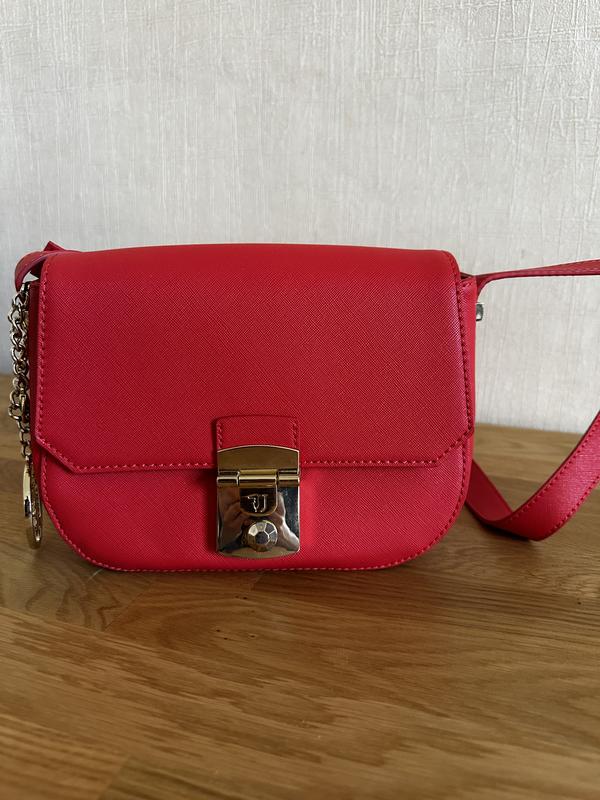 Сумочка в стані нової , носилась можливо раз чи два, весь інший час просто стояла в мішечку. Є пальник та бірки з кьюаром. Всі куточки цілі. Підрізала ремінець , бо був дуже довгий і було незручно носити через плече. Обрізочок від нього також лишився)) все є на фото Доволі вмістка, незважаючи що компактна 👌🏼 буде супер акцентом на будь яку пору року 🥰
