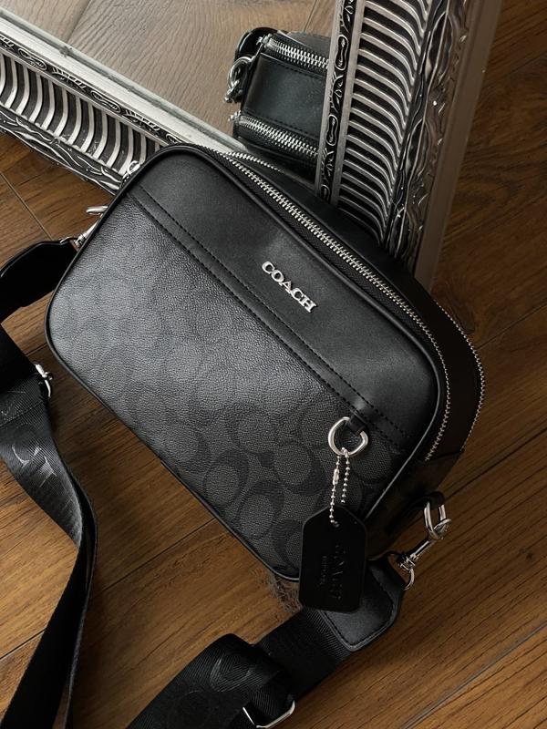 ОТРИМАЛИ ЧОРНУ- В КІЛЬКОСТІ! Сумка виготовлена з гладкої еко-шкіри з фірмовою канвою. Усередині одне відділення також є невелика кишеня. Підкладка із щільного та якісного текстилю, є шкіряна нашивка з брендовим тисненням та бирка. Фурнітура брендована. Ремінець із щільного текстилю, має регульовану довжину - максимальна 120см Розмір: 24*16*8см Матеріал: еко-шкіра.