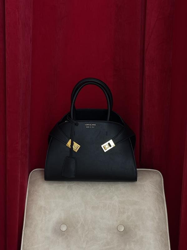 Сумка Salvatore Бренд заснований у Флоренції в 1927 році, і Ferragamo став світовим лідером у сфері розкоші. Сумка виготовлена з гладкої шкіри. Всередині одне відділення, одна внутрішня кишеня на блискавці, знімний аксесуар - кільце для ключів, декор застібки із замком Gancini. Підкладка у сумки з чорної шкіри, в середині тиснення логотипу. Додатково прикрашена брелком. Фурнітура металева в золоті. Має ручку для носіння у руці та вузький ремінець з регулюємою довжиною для носіння через плече. Розмір: 31*22*16см Матеріал: шкіра Максимальна довжина широко ременя 120см чорний 20279-1 коричневий 20279-2