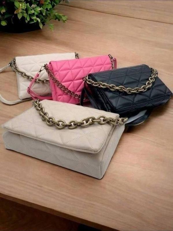 Сумка №С2 Тканина екошкіра Виробник Туреччина 🇹🇷 Коляри беж,рожевий, чорний Стьобана жіноча сумка середнього розміру з ручкою-ланцюжком - модель для справжніх модниць! Сумка виконана із стьобаної екошкіри, має одне відділення з підкладкою на блискавці .Всередині відкрита кишеня та кишеня на блискавці. Додатково закривається магнітний клапан. Розміри сумочки: 30 см ширина по дну, 18см висота, 6 см глибина