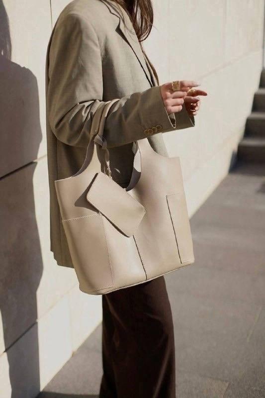 Сумка №С14 Тканина екошкіра Виробник Туреччина 🇹🇷 Люкс сегмент Колір бежевий Стильна містка жіноча сумка, виготовлена з якісного шкірозамінника. Сумка має один основний відділ.Усередині сумки косметичка, на ременці монетниця.Довгий ремінець із ланцюжком Заміри висота 30,ширина 40