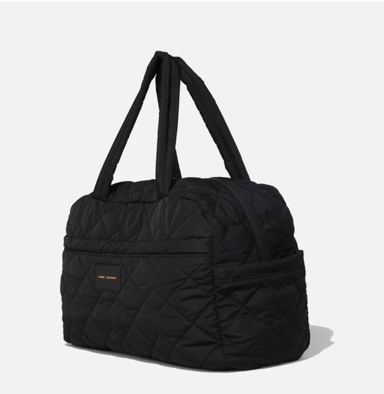 Вихідна сумка Marc Jacobs із стьобаного чорного нейлону з просторим дизайном для носіння необхідних речей у подорожі. Подвійні плечові ремені та знімний смугастий плечовий ремінь дозволяють носити через плече або через плече. Металева фурнітура золотистого кольору та нашивка з логотипом Marc Jacobs спереду доповнюють великий вікендер. Нейлон Розміри: В: 32 см x Ш: 49 см x Г: 22 см. Висота ручки: 28 см. Висота ремінця: 75 см.