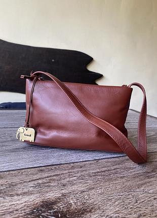 Кожаная сумочка, три отделения, маленькая, но достаточно вместительная: размеры 15/25/7, длина ручки 53см, в идеальном состоянии