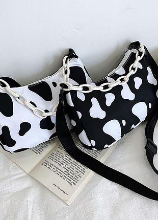 Новий тренд підкорює сферу моди 👻 Шукаєш стильний і мега зручний аксесуар? 🌺 🌼 Оригінальна сумка корова - саме те, що потрібно для цього! ✨Досить містка, поскільки всередині одне велике відділення. В основу міцно прикріплений ремінець, який регулюється. Сумка застібається на змійку. Всередині сумки є підкладка. Розмір: 17 см х 29 см, ширина дна 5 см. Довжина ремінця: макс 102 см Матеріал: цупка плащівка. Легка та зручна у використанні. Корова чекає на тебе вже зараз 🎈🥳