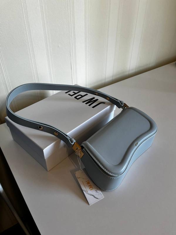 D0207 • JW PEI Joy 👜 Сумка багет из коллекции JW PEI нежно голубого цвета. Застежка модель выполнена из эко кожи премиум качества. • Отделение закрывается на двух магнитах; • Модель с одним отделением; • В середине есть дополнительный маленький карман; • Регулируемый ремень 28,5-57 см; - Толщина: 6 cm. - Высота: 14,5 cm. - Ширина у основания: 26.5 cm. Состав: 100% премиум эко кожа, подкладка ✔️ В комплекте бирка с лого, брендовый брючин и коробка. • в комплекте праздничная упаковка ✅