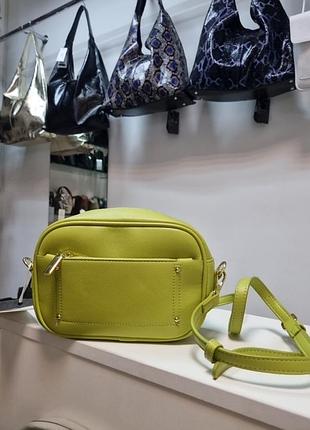 Нова стильна сумочка,гарного салатового кольору.Розмір 22х15см.Всередині немає карманів,лише на лицьовій стороні і зворотній по карманчику.
