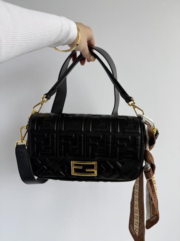 -Матеріал: Шкіра -Колір: Чорний (тиснений FF Monogram) -Фурнітура: Золотистого кольору -Розміри: 26 x 16 x 6 см -Країна виробництва: Китай 🇨🇳 -Ремінець: Коротка ручка + знімний регульований плечовий ремінець -Закриття: Магнітна застібка з металевою пряжкою "FF" -Відділення: Основне відділення Внутрішня кишеня на блискавці -Стиль: Преміальний, класичний, елегантний