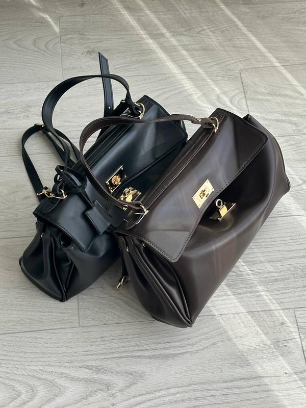 Женская сумка люкс качества из экокожи на два отделения с длинным и короткими ремешками