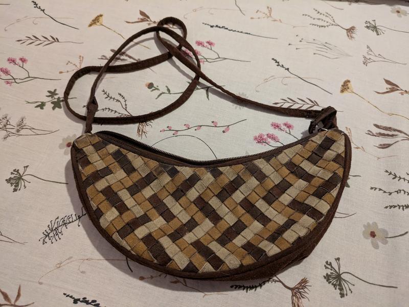 Оригінальна коричнева сумочка через плече з натуральної шкіри у гарному стані. Довжина 25 см, висота 10 см.