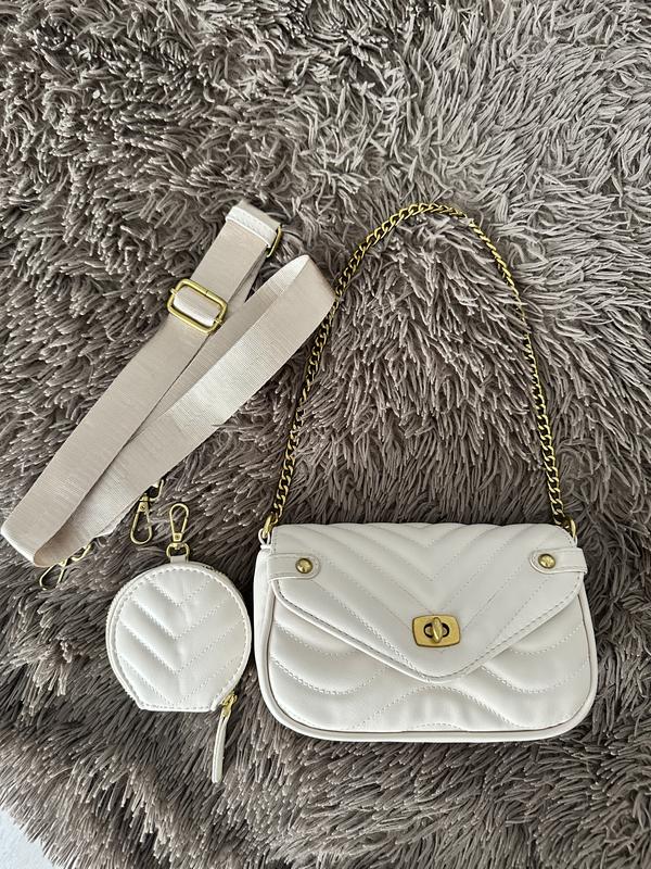 еко-шкіра 20*12*6 см, молочний колір, стан:майже нова, носилася пару разів, в комплекті ремінець додатковий с гаманцем