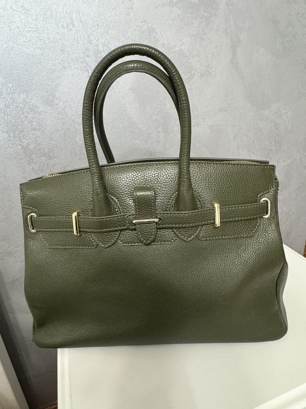 Сумка, яка закохує з першого погляду! Італійська якість + натуральна шкіра + стильний зелений колір = ідеальна базова річ для гардеробу! Матеріал: 100% натуральна шкіра Країна: Made in Italy Колір: насичений оливковий Стан: майже нова — була у використанні лише 2 рази Формат: дуже велика — легко вмістить документи, косметичку, ланчбокс і ще залишиться місце! Фурнітура: золото, акуратна й стильна Підкладка: бежева, міцна, із внутрішніми кишенями