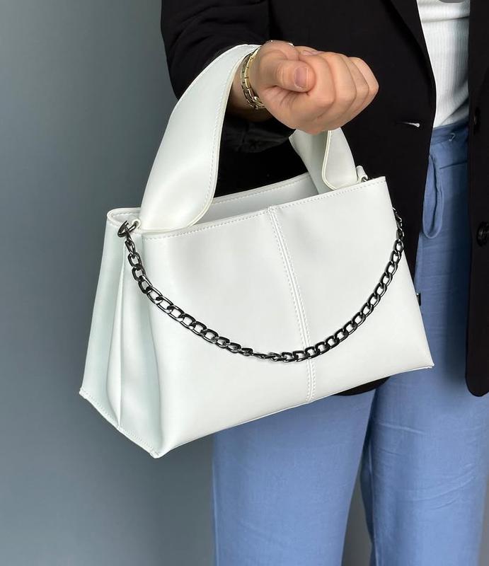 Сумка білого кольору, підійде на літній сезон, в середині є підкладка та 2 кишеньки , є невеличкий дефект по замку