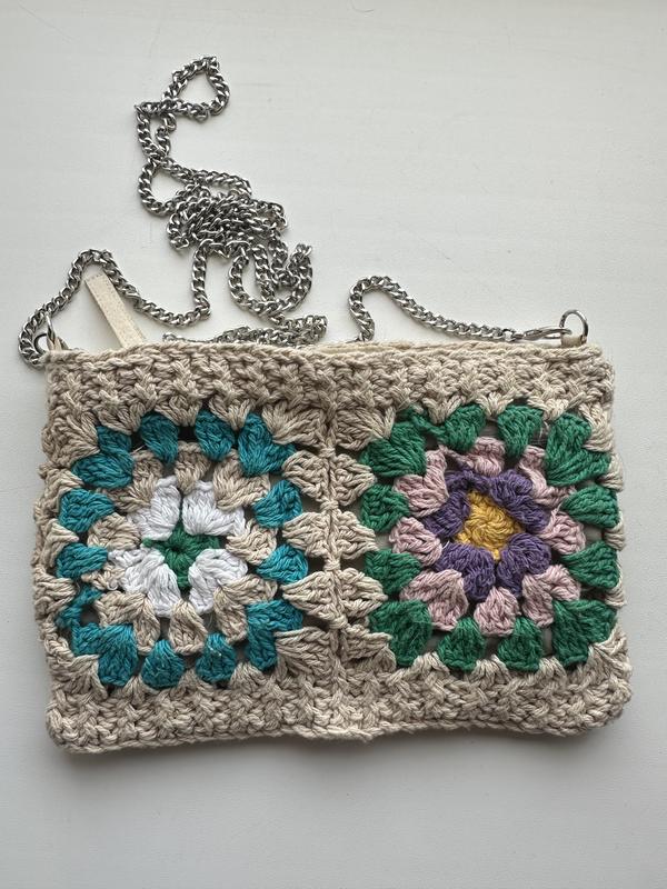 Сумка клатч кроше Різний орнамент з 2х сторін Ланцюжок знізається Розмір 19*12 см