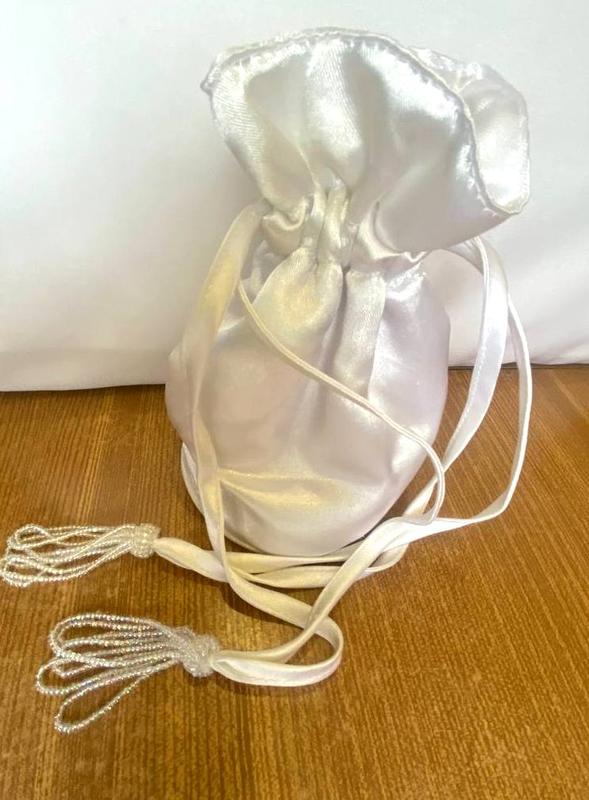 Атласна сумочка-клатч на затяжці з бісерним шнурком/Англія/. Сумочка круглої форми з атласної тканини на підкладці, затягується на довгий шнурок, офрмлений білим бісером, що переливається. Використовувала тільки раз у приміщенні, для мене на сьогодні не актуальна, продаю не дорого. Увага!!! У розділі ПРО МЕНЕ - вся додаткова інформація. "Безпечною оплатою" відправляю тільки нові речі. НАЛОЖКИ! і ПОВЕРНЕННЯ! - Немає!!! Купівля: 100% передоплата на карту monoбанка. Будь ласка, не натискайте "КУПИТИ", поки не узгодите всі нюанси, особисто зі мною, щоб потім, не виникало жодних непорозумінь! Дякую за розуміння та приємних покупо