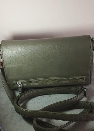 Сумка жіноча кольору хакі Всередині 2 відділення на спільному замку Через плече