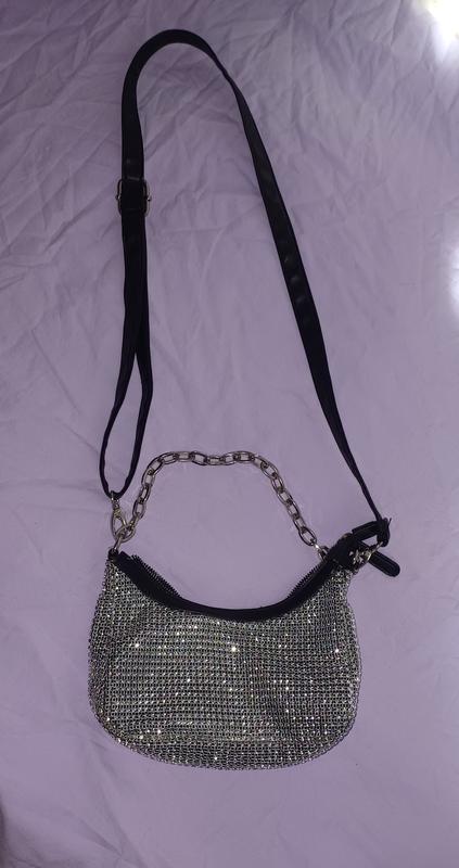 все каміння на місці, ремінь через плече та ручка ланцюжок для носіння. всередині підкладка, є маленька кишенька для дрібниць.
