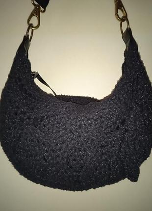 На підкладці. Виготовлена із товстих бавовняних ниток. Ширина дна 11 см. Висота 21 см. Ширина 27 см. Довжина ручки регулюється. Ширина ручки 2.8 см.