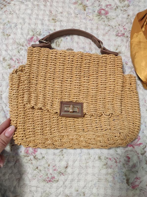 нежная плетеная сумочка. достаточно вместительная. состояние идеальное, без нюансов. в подарок к ней повязка на голову.