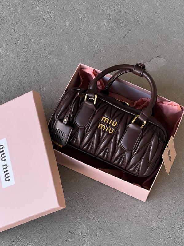 Сумка miu miu arcadie matelassé nappa leather bag premium шоколад