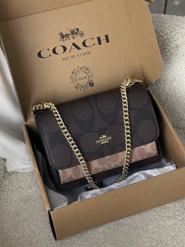 Сумка Mini Klare Crossbody in Signature Canvas Сумка виготовлена з гладкої шкіри з фірмовою канвою. Усередині три великих відділення, одна невеличка кишеня, та же одна на застібці. На звороті відкрита кишенька для дрібниць. Підкладка всередині текстильна, приємна на дотик. Золотистий ланцюжок регулюється як для носіння через плече так і у руці, ручка з натуральної шкіри. Матеріал: шкіра Фурнітура металева з логотипами. Розмір сумки: 21 х 15 х 8 см Плечовий ремінь: максимально 118см ⭐️ Брендова коробка, пильовик в комплекти. код: темно-коричневий 20310-1 коричнево-молочний 20310-2