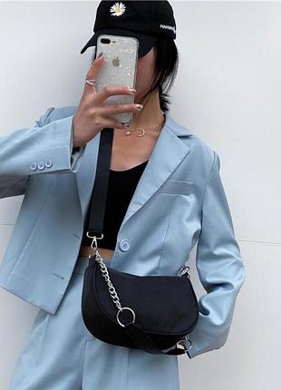 Потрібен стильний акксесуар для доповнення модного образу? Представляємо елегантну та функціональну чорну сумку-багет через плече, що стане незамінним доповненням вашого гардеробу. Ця сумка поєднує в собі сучасний дизайн, зручність та універсальність, роблячи її ідеальною для будь-якої нагоди. Особливості та переваги: * Мінімалістичний та стильний дизайн * Зручна та практична: компактний розмір дозволяє носити все необхідне: телефон, гаманець, ключі та інші дрібниці. Зручний ремінець на плече забезпечує комфортне носіння протягом усього дня. * Висока якість матеріалів: виготовлена з якісної плащівки, що забезпечує довговічність та легкість у догляді. * Універсальність використання: ідеально підходить для щоденного використання, зустрічей з друзями, прогулянок містом, а також може доповнити вечірній або святковий образ. Трендова сумочка з нейлону підійде до будь-якого стилю та для будь-якої нагоди для сучасних жінок, які цінують стиль та комфорт. Незважаючи на свої невеликі розміри, сумочка досить містка. Модель застібається на змійку. Плечовий ремінь легко регулюється. Всередині сумки є підкладка. Розмір: ширина 25 см, висота 16 см, ширина дна 9 см Матеріал: плащівка Колір: чорний Придбай трендову сумку вже сьогодні ❤️
