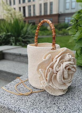 Сумка відро із рафії Ручна робота Застібається на магнітну застібку Розміри 20х14 см Квітка знімна Можливий повтор в інших кольорах