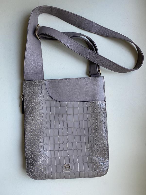 Оригінальна сумка Radley з натуральної шкіри, має два відділи з кишенями, довжина ручки регулюється, нова, але є невелика потертість собачки(є на фото), заміри: Довжина 26,5 см Ширина 22 см