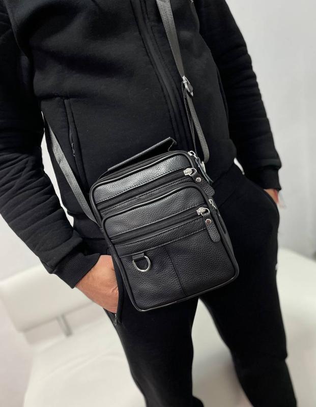 Чоловіча якісна та стильна сумка месенджер з натуральної шкіри чорна