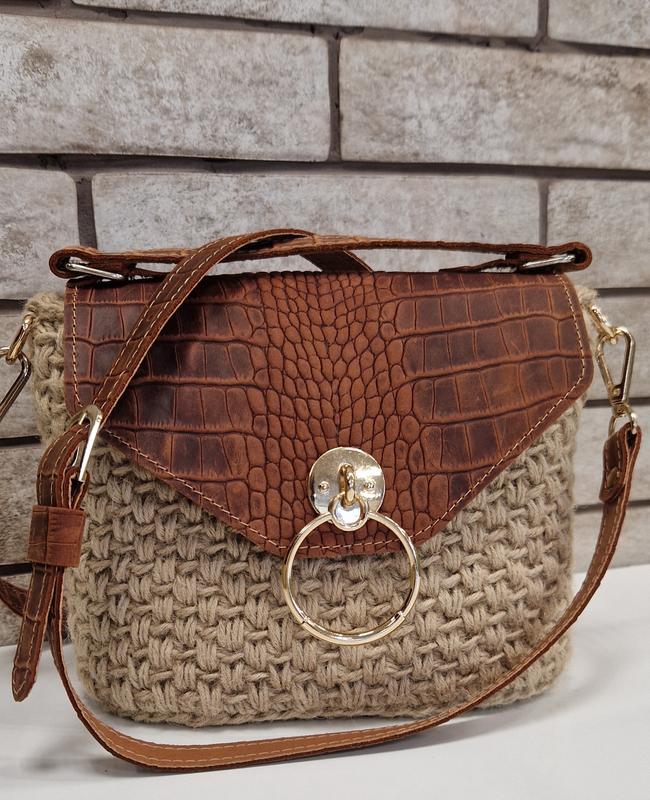Сумка ручної роботи з джутового шнура та якісною шкіряною фурніторою, під замовлення виконання 7-10 днів. Широкий вибір кольорів шкіряної фурнітури
