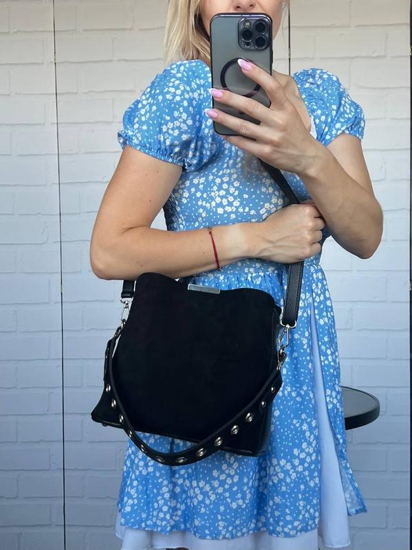 Жіноча стильна та якісна сумка з натуральної замші та еко шкіри чорна