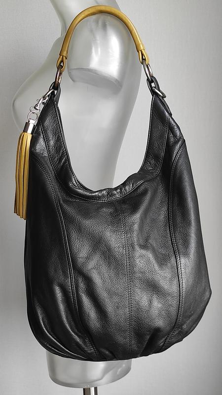 Сумка хобо. 100% шкіра. Міцна ручка. В середині одне відділення з боковою кишенькою на змійці. Ззовні теж є відділення на змійці. Заміри: довжина ручки - 34 см; висота по центру - 32 см; висота по краю - 45 см; ширина приблизно посередині - 42 см; денце - 9,5 см х 14,5 см. Дивіться інші мої оголошення.