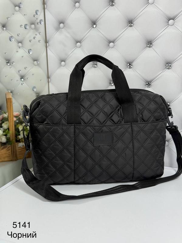 Жіноча стильна та якісна сумка зі стьобаної плащівки чорна
