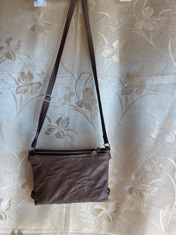 маленька жіноча сумочка, коричнева, через плече, на два відділення, розмір 16 на 23, стьобана