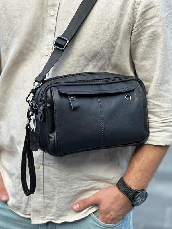 Мужская качественная и стильная сумка мессенджер из натуральной кожи черная