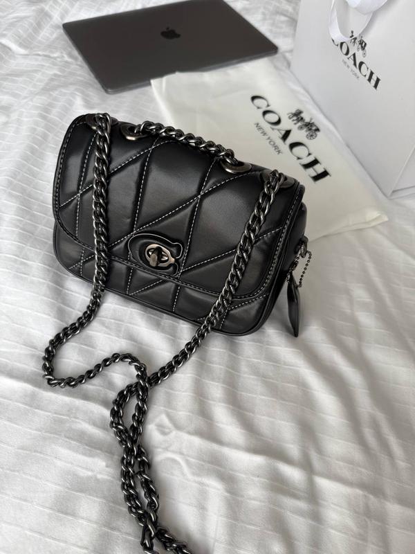 Сумка cassie top handle structured шкіряна чорна зі срібним ланцюжком білі шви