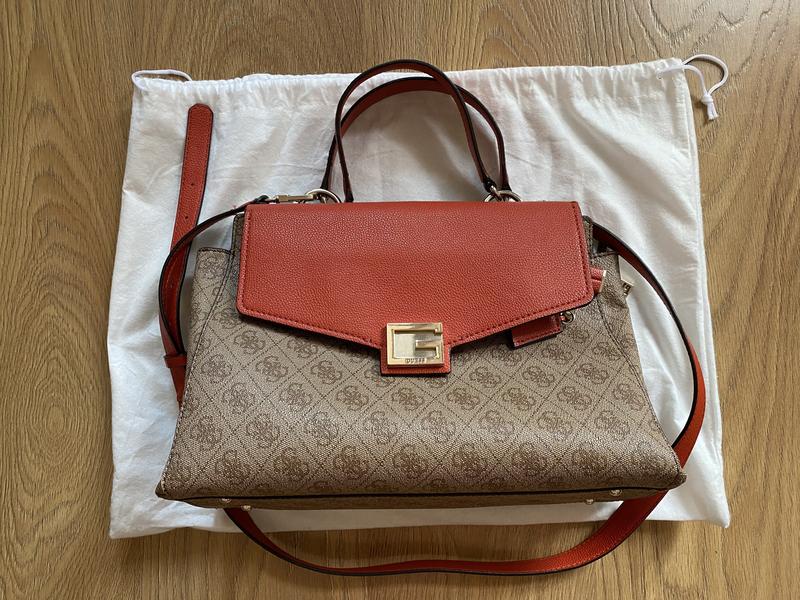 Сумочка Guess Розміри ширина біля основи 33, висота 22, ширина збоку 13 Довга та короткі ручки Пильник