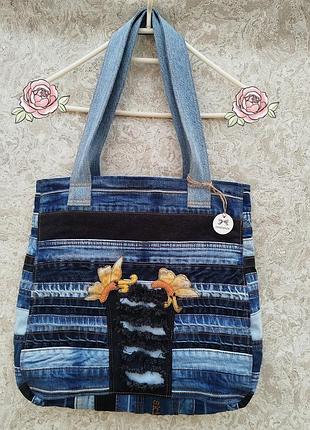 Джинсова сумка-шопер (на плече) виміри на останній світлині всередині дві кишені одна без змійки, одна з блискавкою точні кольори не передає фото! Можна прати в пранні, 30-40 градусів, віджимання не більш ніж 600 обертів, щоб слугувала довше подклад х/б Обміну та поверненню немає!