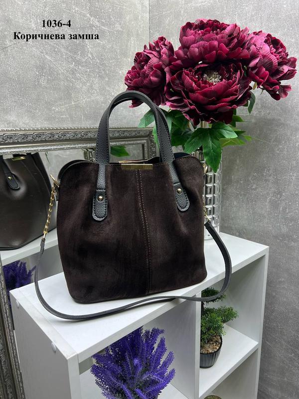 Жіноча стильна та якісна сумка з натуральної замші та еко шкіри коричнева