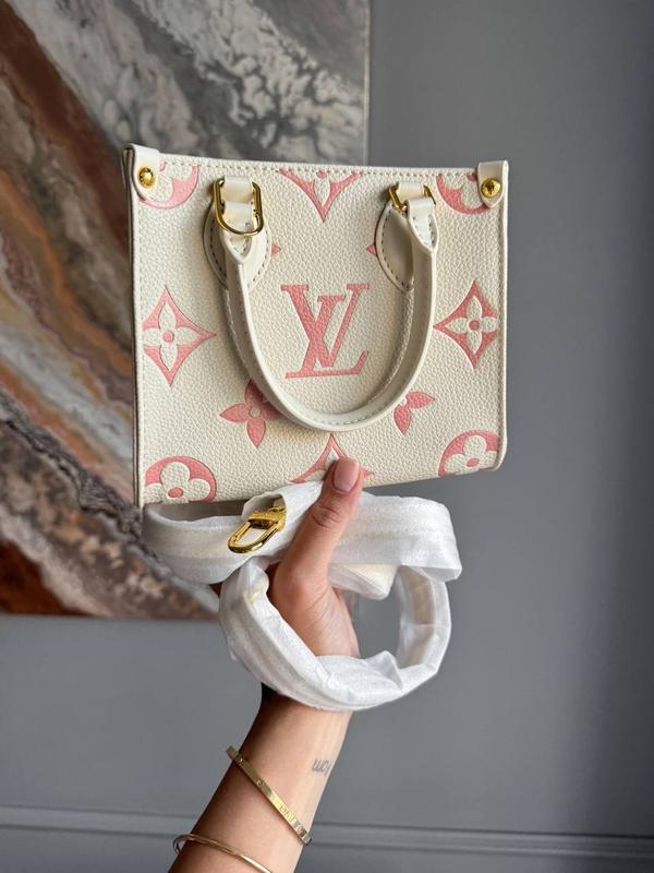 Шкіряна жіноча сумка класична жіноча сумка onthego pm giant monogram canvas cream/pink