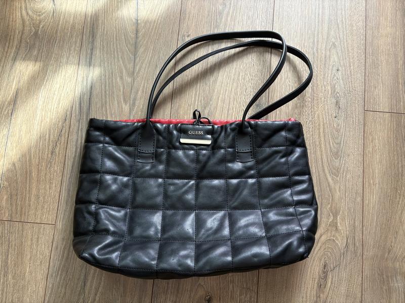 Сумка Guess оригінальна двохстороння. Замінені ручки на шкіряні . Нюанси на фото. Ціну пропонуйте Висота 28,5 см, ширина 43, висота ручок 27