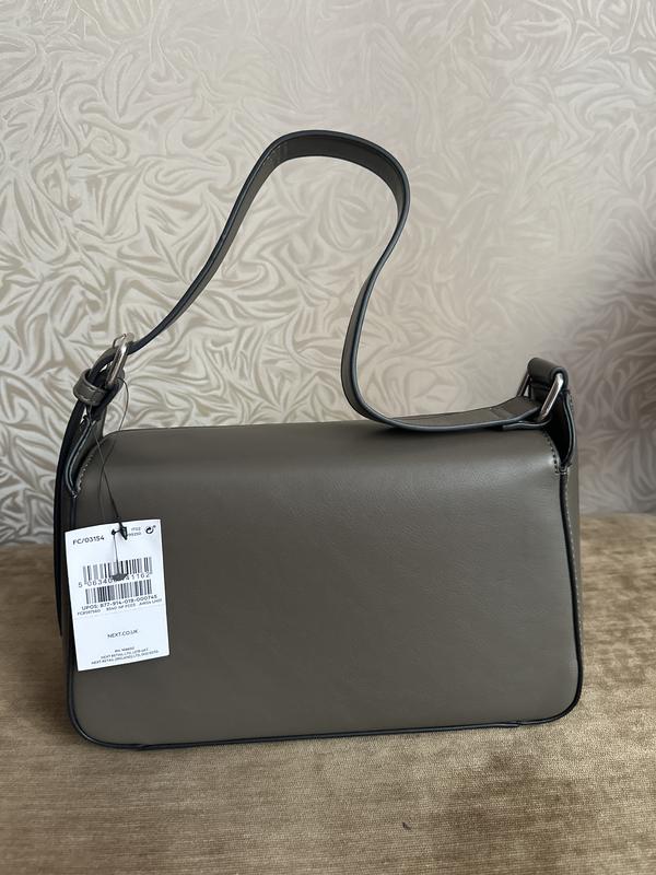 Сумка NEXT, новая, на короткой ручке, закрывается на магнитах, серо оливковый цвет, высота 16 см, ширина 12 см, внутри маленький карман есть.
