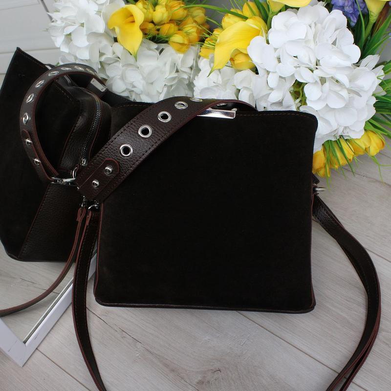 Женская стильная и качественная сумка из натуральной замши и эко кожи коричневая