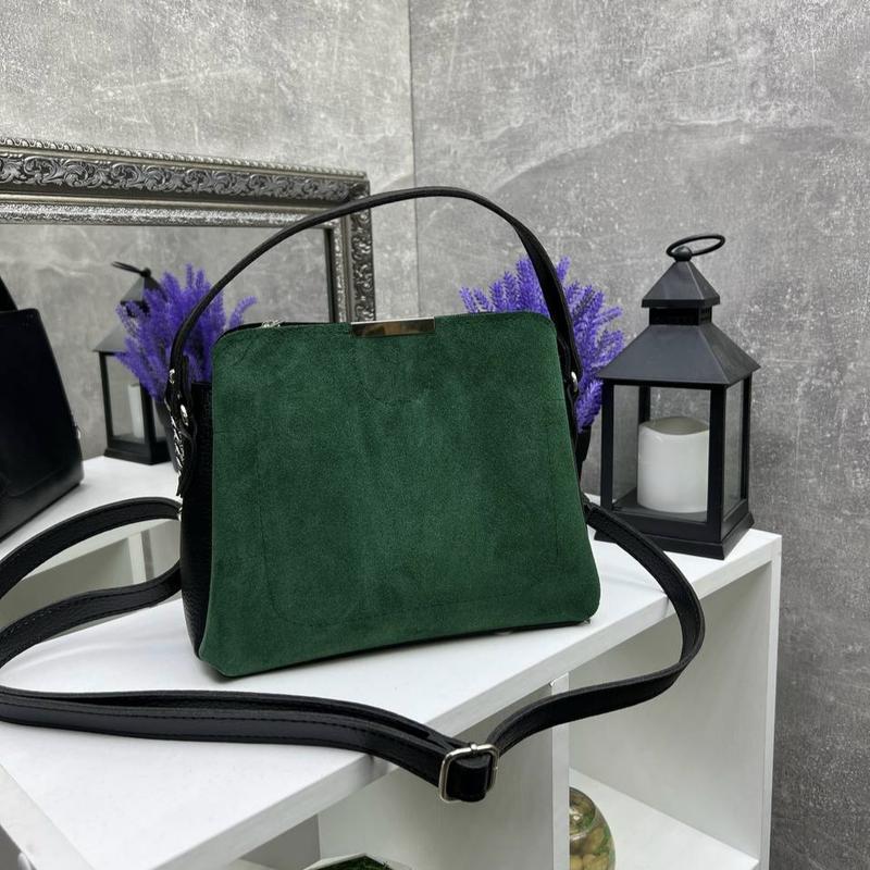 Жіноча стильна та якісна сумка з натуральної замші та еко шкіри зелена/ чорна