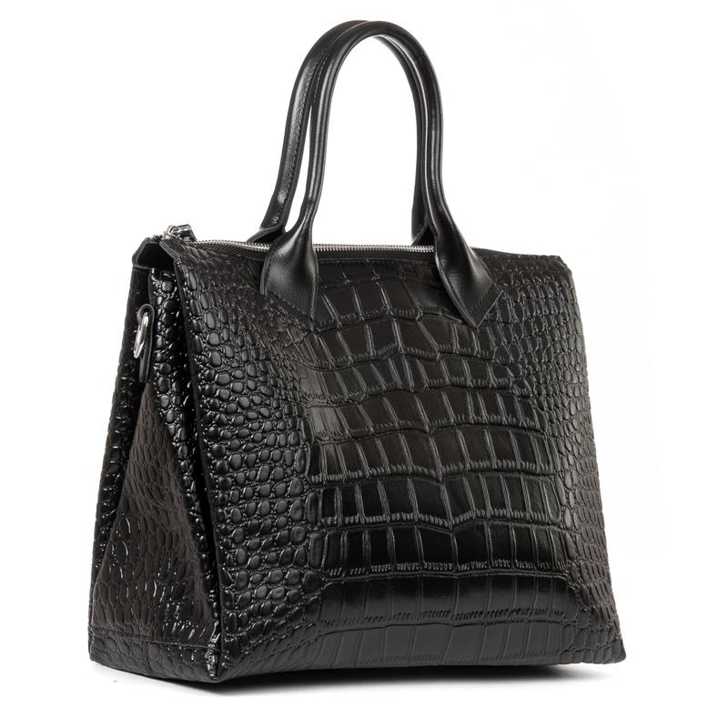 Виготовлена із натуральної щільної шкіри. Закривається на блискавку. Усередині знаходяться три відділення, відкрита кишеня та кишеня на блискавці на внутрішніх стінках сумки. Зовні сумки на звороті розташована кишеня на блискавці. У комплекті регульований плечовий ремінь. Розмір(см) 34*27*14, висота ручок 14 см.