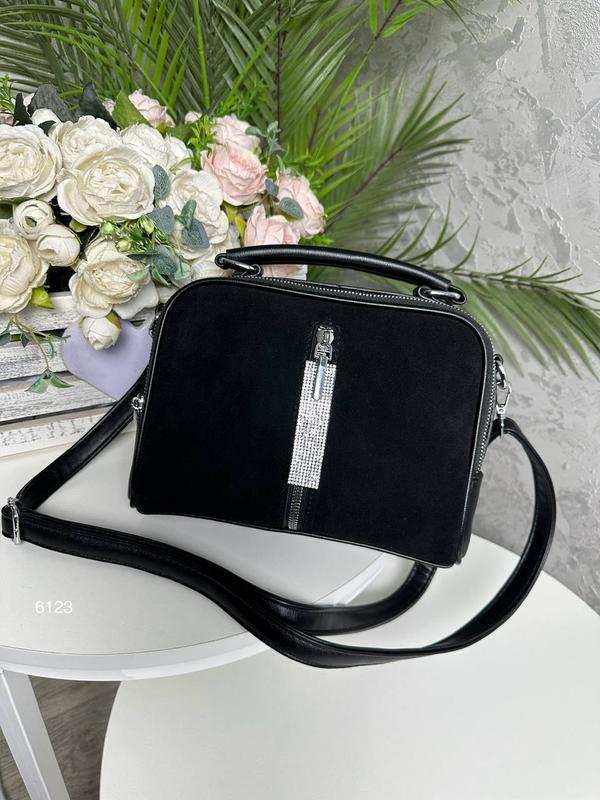 Жіноча стильна та якісна сумка з натуральної замші та еко шкіри чорна