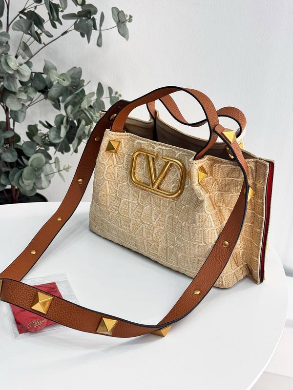 Tote сумка 👑 • материал: плетенный дизайн из рафии + фирменная шикарная вышивка 🧵 + детали и ремни из натуральной кожи • декор: VLogo Signature • плечевой ремень украшен культовыми крупными заклёпками • все логотипы и гравировки • серийный номер 🔢 В полной упаковке 📦🎁 Размер: 25"17"13 см 7090.0 грн