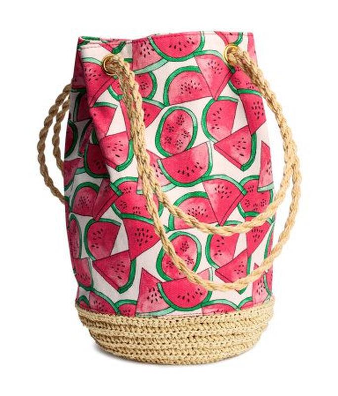Стильная комбинированная яркая сумка из текстиля и соломы с принтом арбузиков. Кому интересны какие то замеры пишите в личку