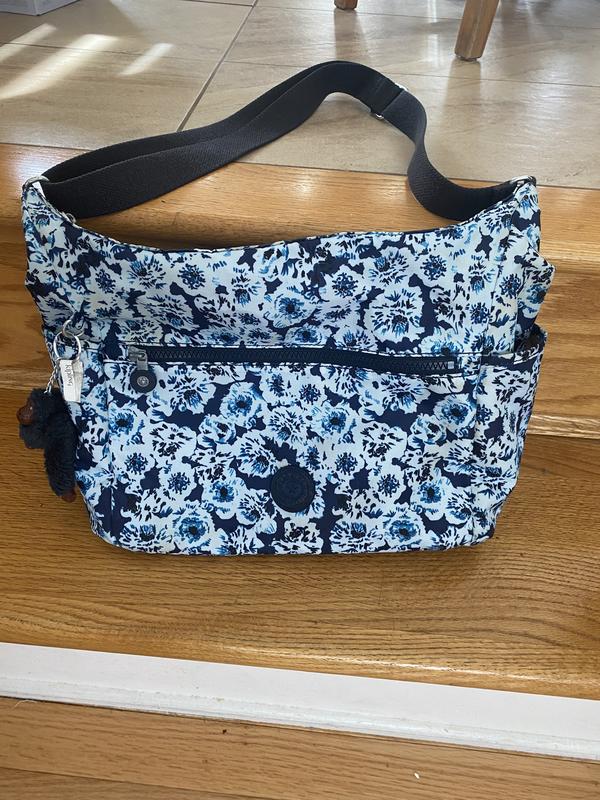 Можна носити як крос-баді, гарного синього кольору з візерунками. Заміри 30х25х15( ширина висота глубина)