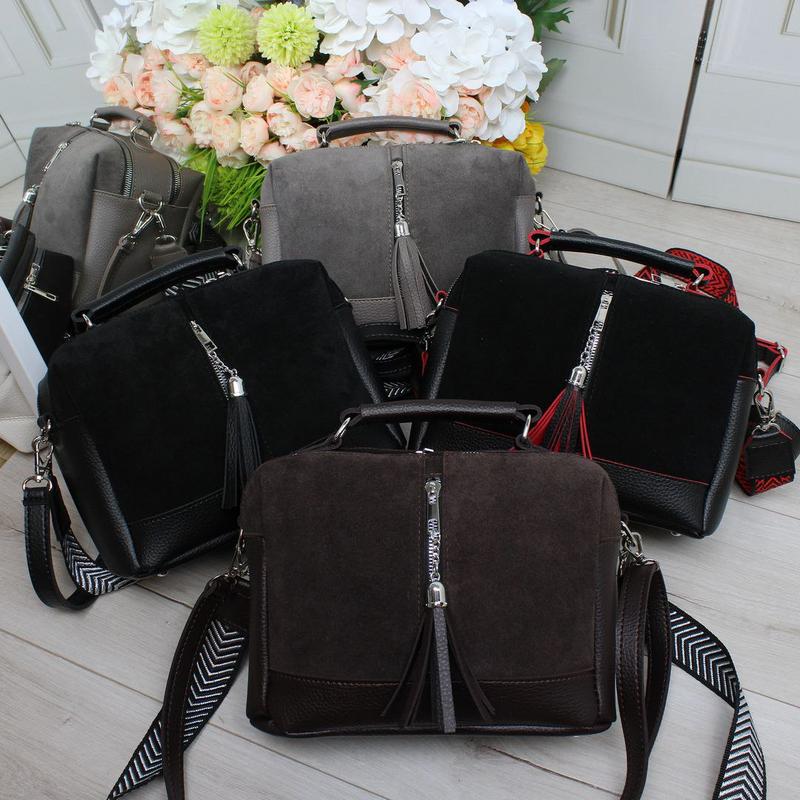 Дуже красива та зручна сумочка з двома ремінцями♥️ Код Д534 💸Ціна- 999 грн💸 ☑️Матеріал: Натуральна замша/Штучна шкіра дуже гарної якості ☑️Розмір: 27 см ширина. 18 см висота. 13 см глибина . Фурнітура срібна ☑️Два окремих відділення. Усередині відкрита кишеня та на блискавці . На лицьовій і зворотній стороні кишені на блискавці. У комплекті два знімних ременя. Довжина тканинного ременя 105 см,ширина 4 см. Максимальна довжина ременя зі штучної шкіри 130 см Виробництво Україна