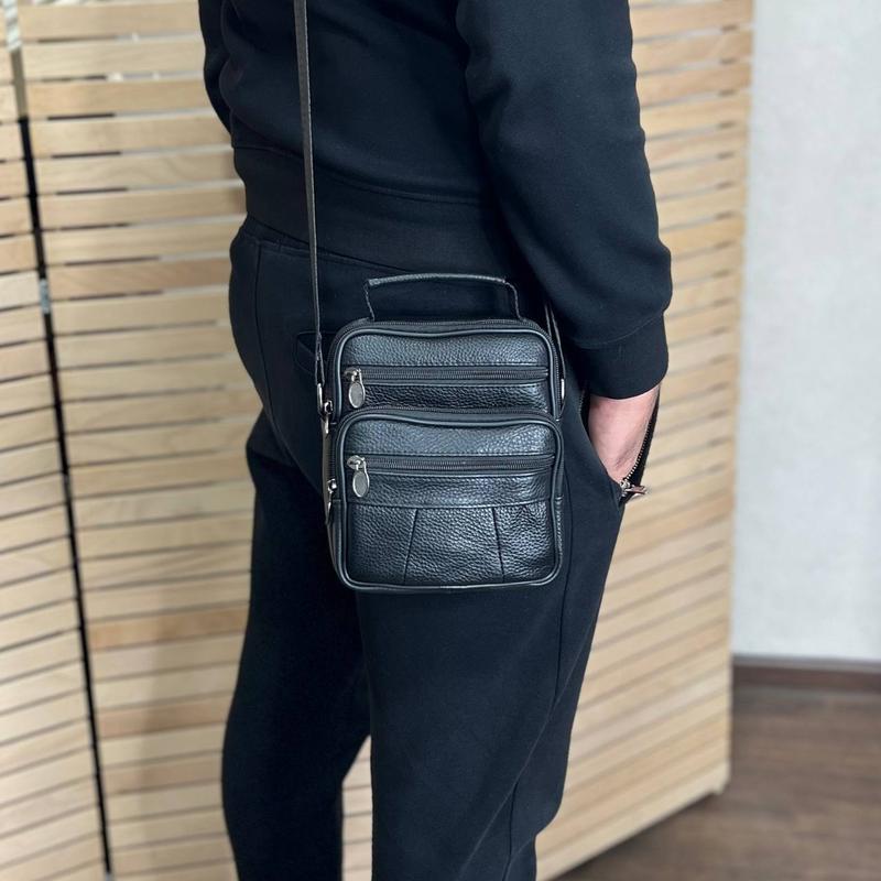 Чоловіча якісна та стильна сумка месенджер з натуральної шкіри чорна